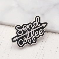A lovely enamel pin, featuring a hand drawn 'Send Coffee' design. Made from black hard enamel and matt silver colour metal with a rubber clasp. Our enamel pin badges are perfect for jazzing up jackets, totes, backpacks and all sorts of other items.