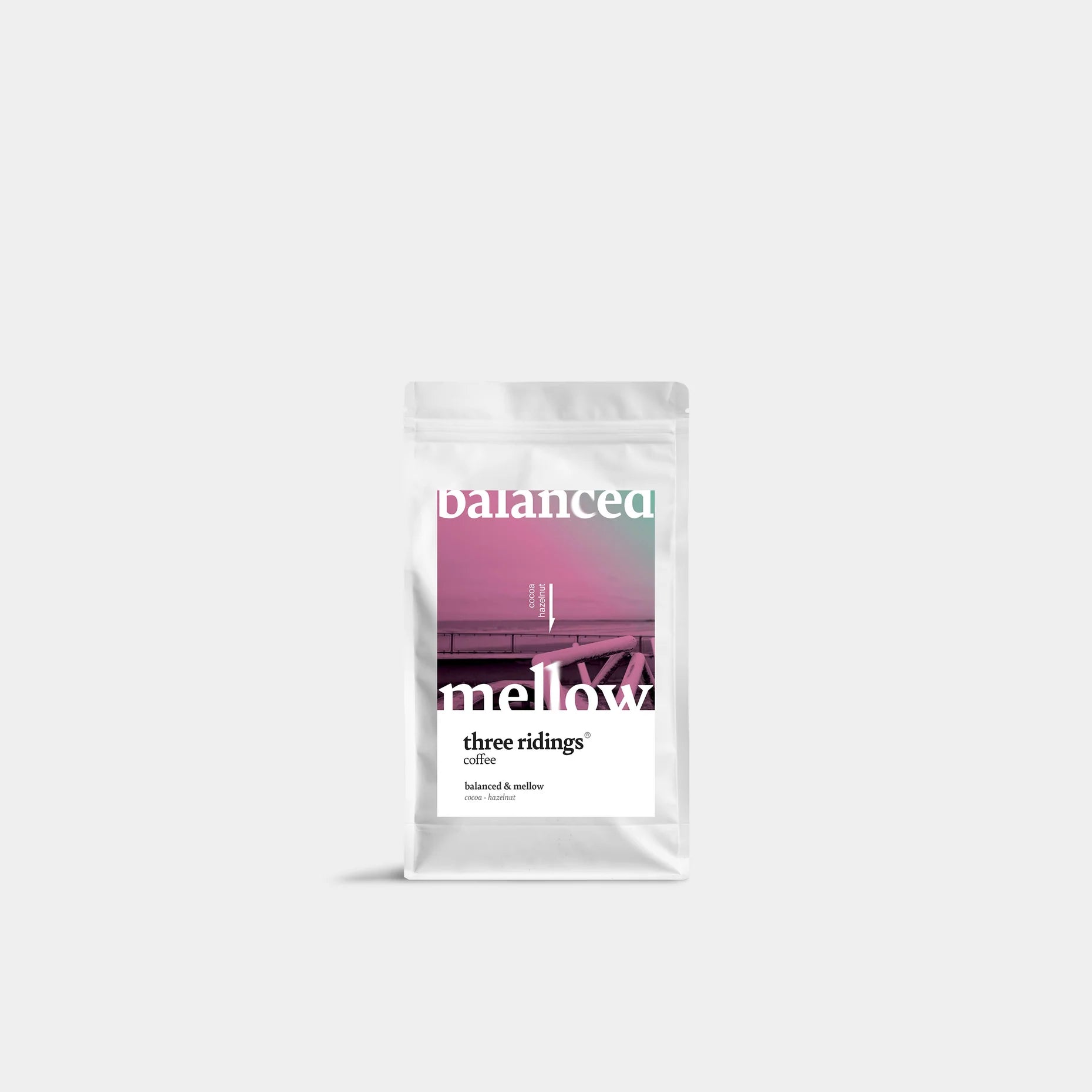 Balanced Mellow is formally Three Ridings Cofee Two Can Dance. This coffee is a medium roast, Brazil (natural) 17/18, NY2/3, SSFC and boasts tastes of light cocoa, nuts and orange zest with a medium body and clean finish.