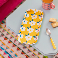 Enamel Happy Retro Floral Tray- Honey Yellow