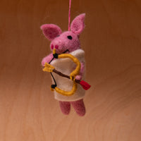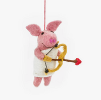 Handmade Felt Cupid Valentines Pig Hanging Decoration