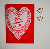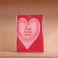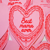 A letter press greeting card featuring a hand drawn retro cake and the words Best Mama ever.