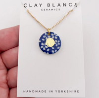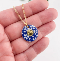 Clay Blanca - Blue, White & Gold Flower Pendant