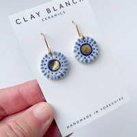 Clay Blanca - Hand Painted Blue, White & Gold Dot Drop Earrings