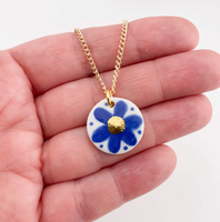 Clay Blanca - Hand painted Blue, White & Gold Flower Pendant