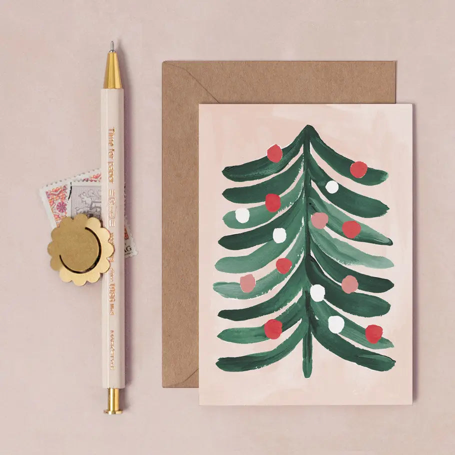 This mini Christmas tree card takes the iconic symbol of the holidays and gives it a modern twist. The trimmed tree's hand-painted brush stroke branches and dotted ornaments are simple yet full of personality, and the mini size of the holiday card makes it perfect for those smaller gifts - add a handwritten message to the blank inside for a personal finishing touch.