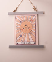Beautifully illustrated tarot card style 'the sun' luxury quality, digital art print. These gender-neutral prints are perfect for a bohemian style home or modern nursery.