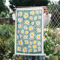 Design by Studio Wald, daisy design 2 colour screen print on unbleached cotton.
